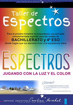 Uno de ellos se dirigen al Aula Didáctica Carolina Herschel dónde se realizan los talleres que hayáis elegido y el otro subgrupo se conduce a la zona profesional del observatorio, para que los alumnos conozcan y experimenten con los telescopios del centro.
