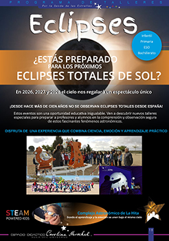 Debido a los ECLIPSES TOTALES DE SOL que se podrán contemplar desde España, hemos incorporado un taller especial para preparar a los alumnos ante estos fenómenos tan impresionantes