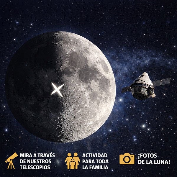 Y no solo será la X del tesoro, ven a descubrir más sorpresas que esconde la luna en esta fase tan asombrosa. Recorreremos los mares del cuarto Creciente, las cordilleras más altas de la cara visible y nos adentraremos en los secretos del Polo Sur lunar.
