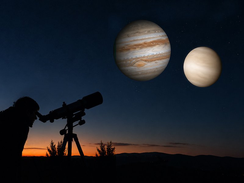 Venus, el “lucero del atardecer”, será el primero en captar tu mirada con su brillo intenso; Júpiter, el gigante del sistema solar, nos recordará la inmensidad del cosmos con sus lunas acompañándolo; y Mercurio, esquivo y cercano al Sol, aparecerá como un pequeño tesoro para quienes sepan dónde buscar.